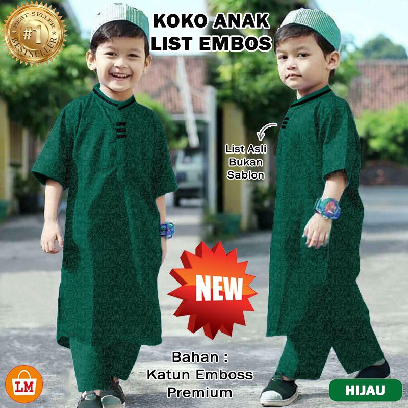 Baju Koko Muslim Anak Umur 1-10 thn bahan katun premium