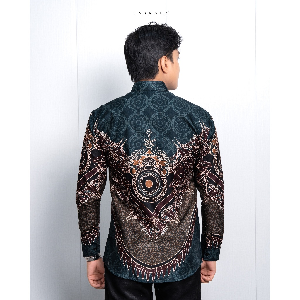 Laskala Batik Premium Bundaran HI Tosca Kemeja Batik Pria Slimfit Lengan Panjang