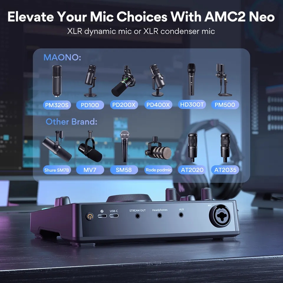 MAONO AMC2 NEO Audio Interface One Stop Mixer Soundcard for Podcast Live Streaming Recording Gaming