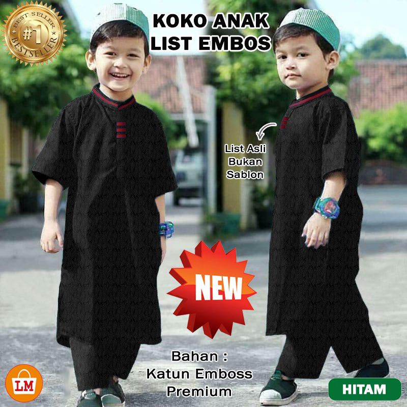 Baju Koko Muslim Anak Umur 1-10 thn bahan katun premium