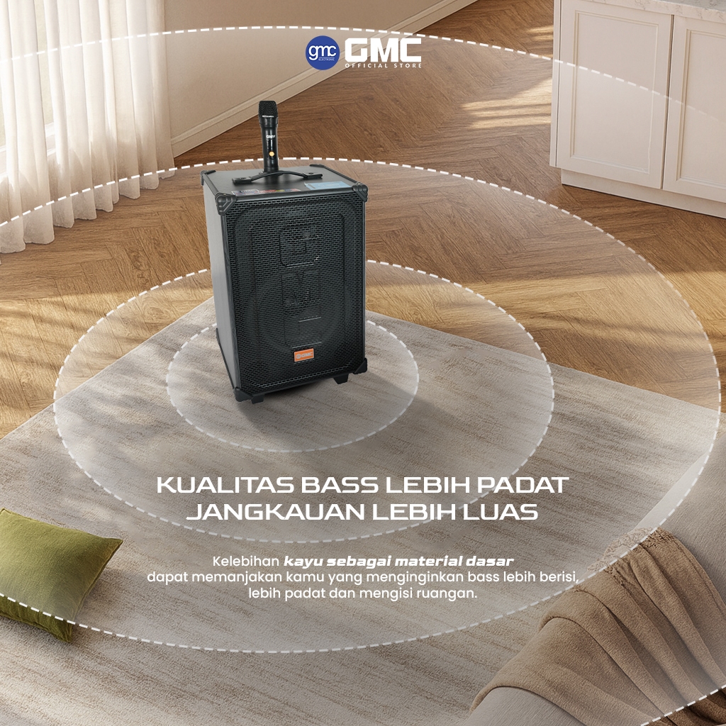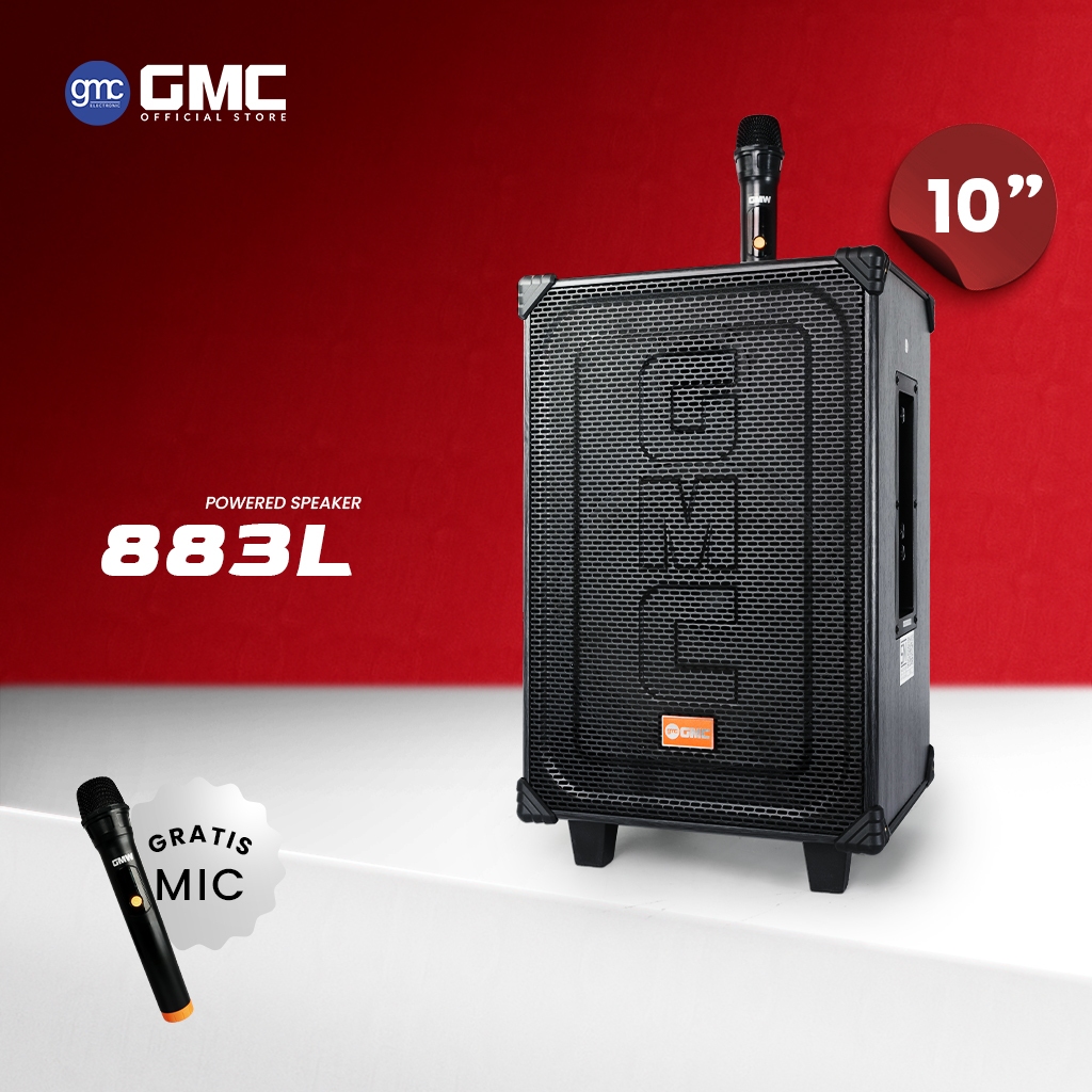 Speaker GMC 883L – Speaker Karaoke Bluetooth 10” – 115W, Gratis Mic Wireless, USB, SD, AV In