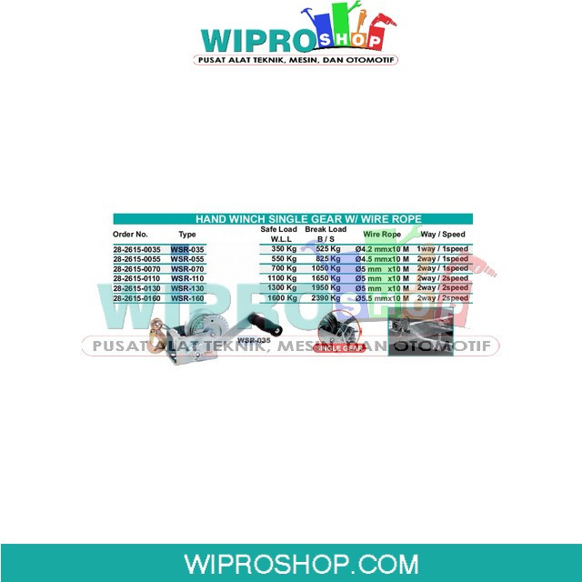 Wipro Hand Winch S.Gear W/ Wire Rope WSR-035 WSR-055 WSR-070 WSR-110 WSR-160 WSR-130