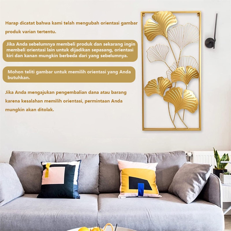 Hiasan Dinding Ruang Tamu Mewah Wall Decor Besi Esetic Bingkai Daun 30 85 cm