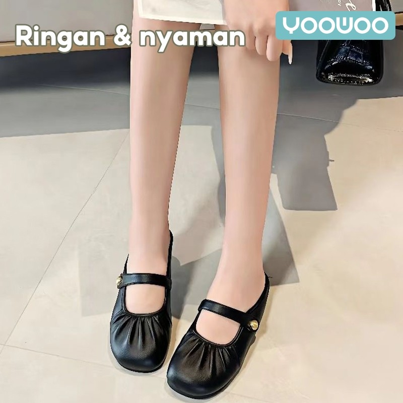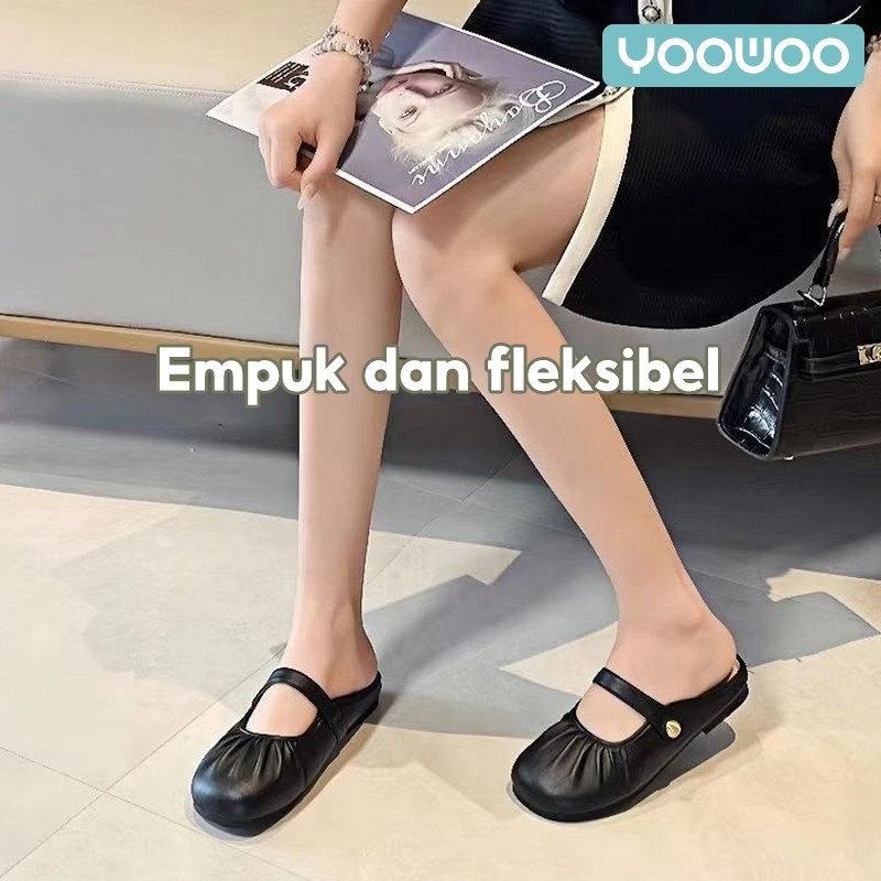 SANDAL SLIP ON WANITA FLAT (YOOWOO ) SANDAL UJUNG TERTUTUP SANDAL FASHION KOREAN STYLE ORIGINAL 100% TERLARIS