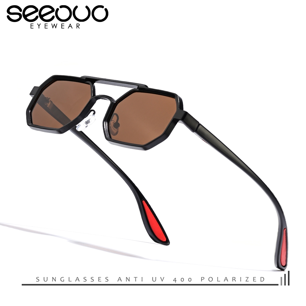 Seeouo Sunglasses Kacamata Hitam Polarized Vintage Stylish UV Protection Anti Silau TR90 Alloy Aviator Kotak Pria Wanita New Fashion 2278