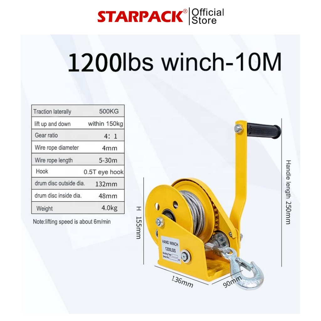 Hand Winch Brake / Katrol Tangan Manual 1200lbs 500Kg 10METER & 20METER