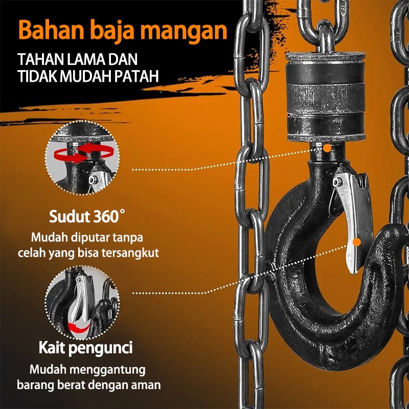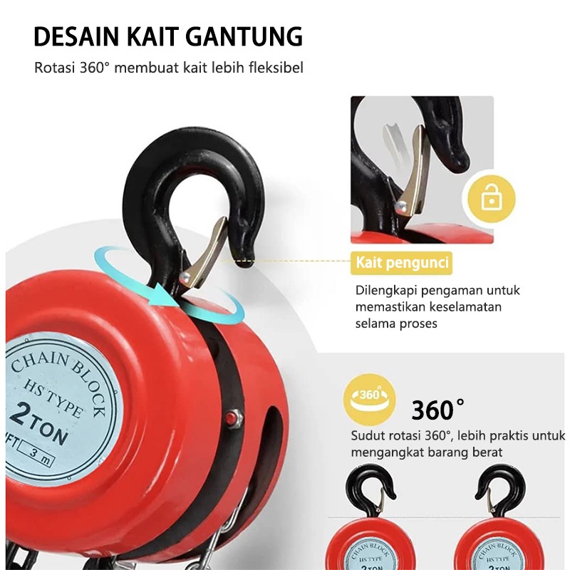 Manual Chain Block / Takel 1 Ton & 2 Ton x 3M - Katrol Angkat Barang Berat, Hoist Baja Tahan Lama Heavy Duty