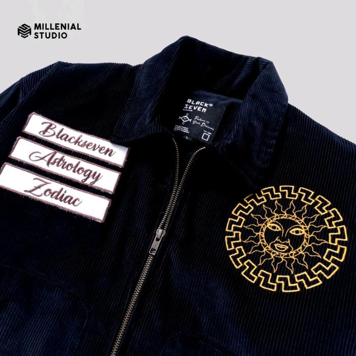 WORK JACKET BOXY ZODIAC NAVY CORDUROY JACKET BORDIR PRIA WANITA ORIGINAL BLACKSEVEN MILLENIAL STUDIO