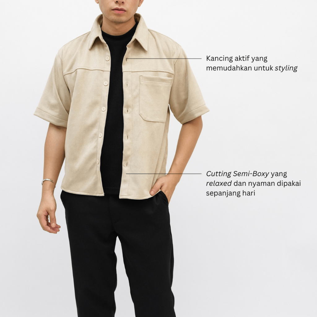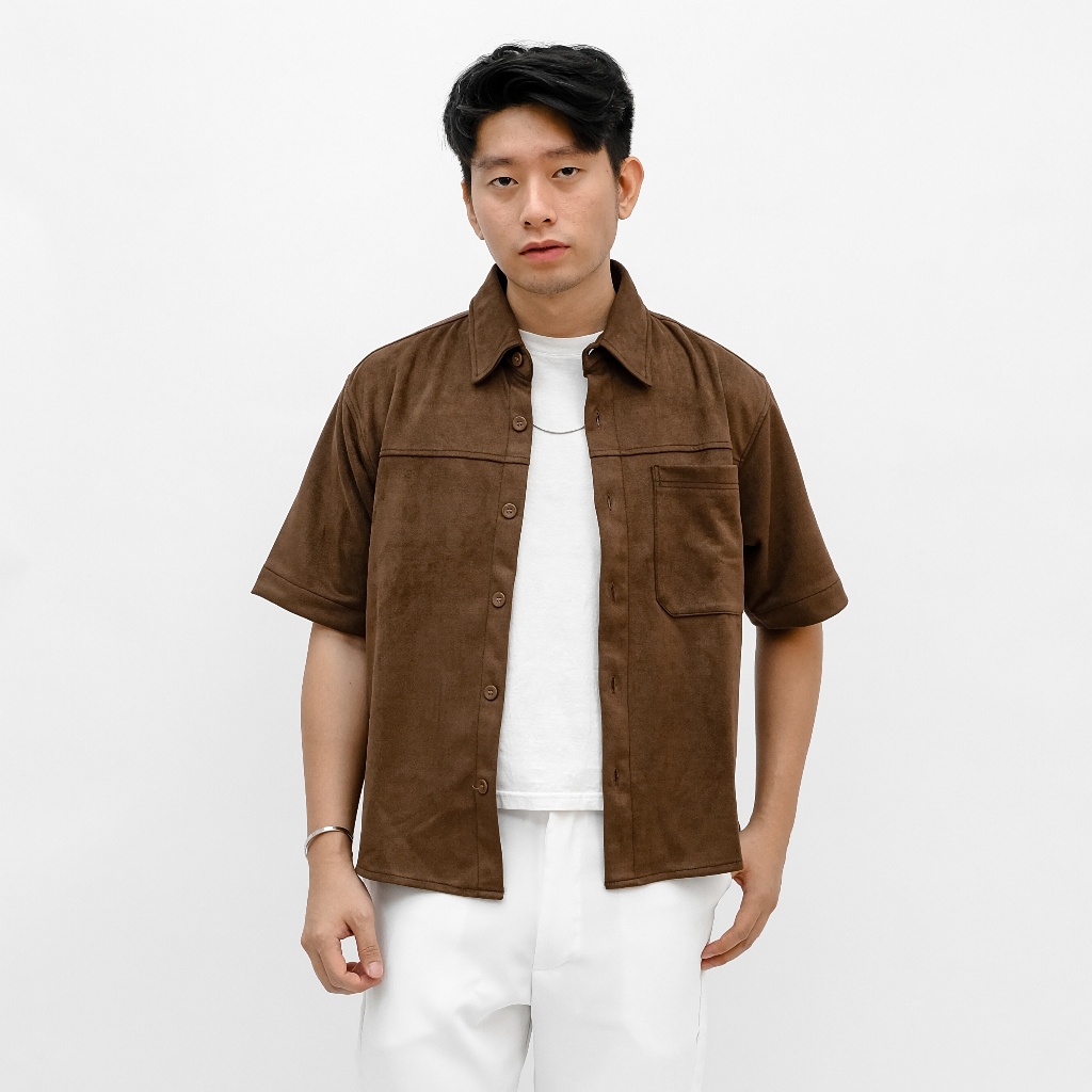 SANVANINA Gangnam Button Suede Shirt | Kemeja Semi Boxy Atasan Berkerah Lengan Pendek Pria Korea