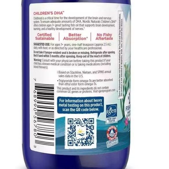 Nordic Naturals Children Kids DHA Otak Anak 1-6 thn Omega 3 Fish Liver Oil, 119ml sirup rasa Strawberry