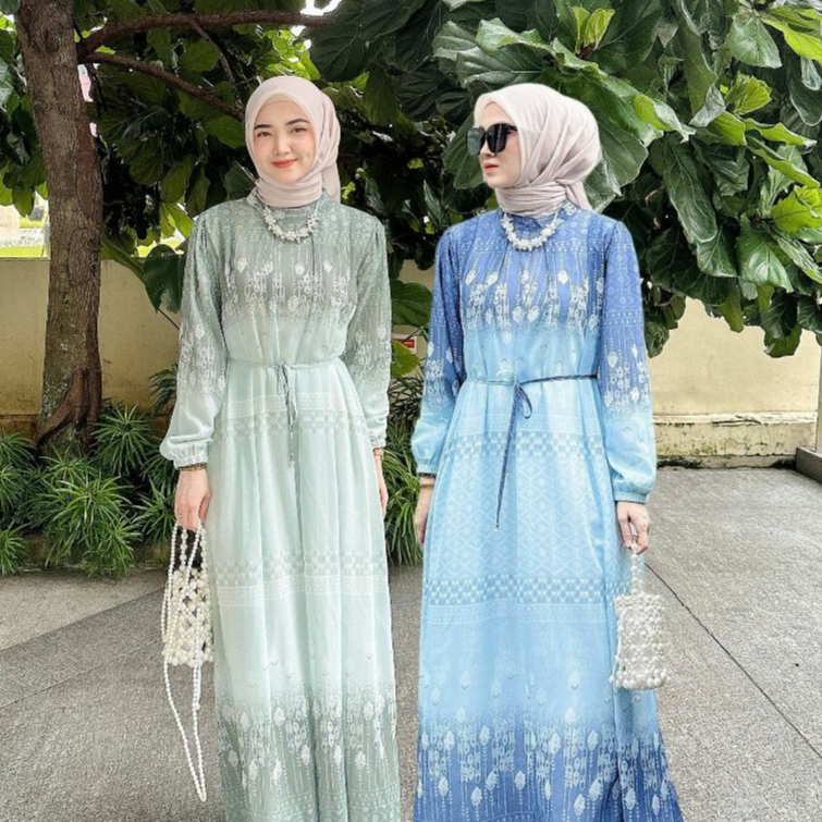 FANMU Dress Gamis Muslim Gamis Syari Wanita Dress Batik Lebaran Kekinian