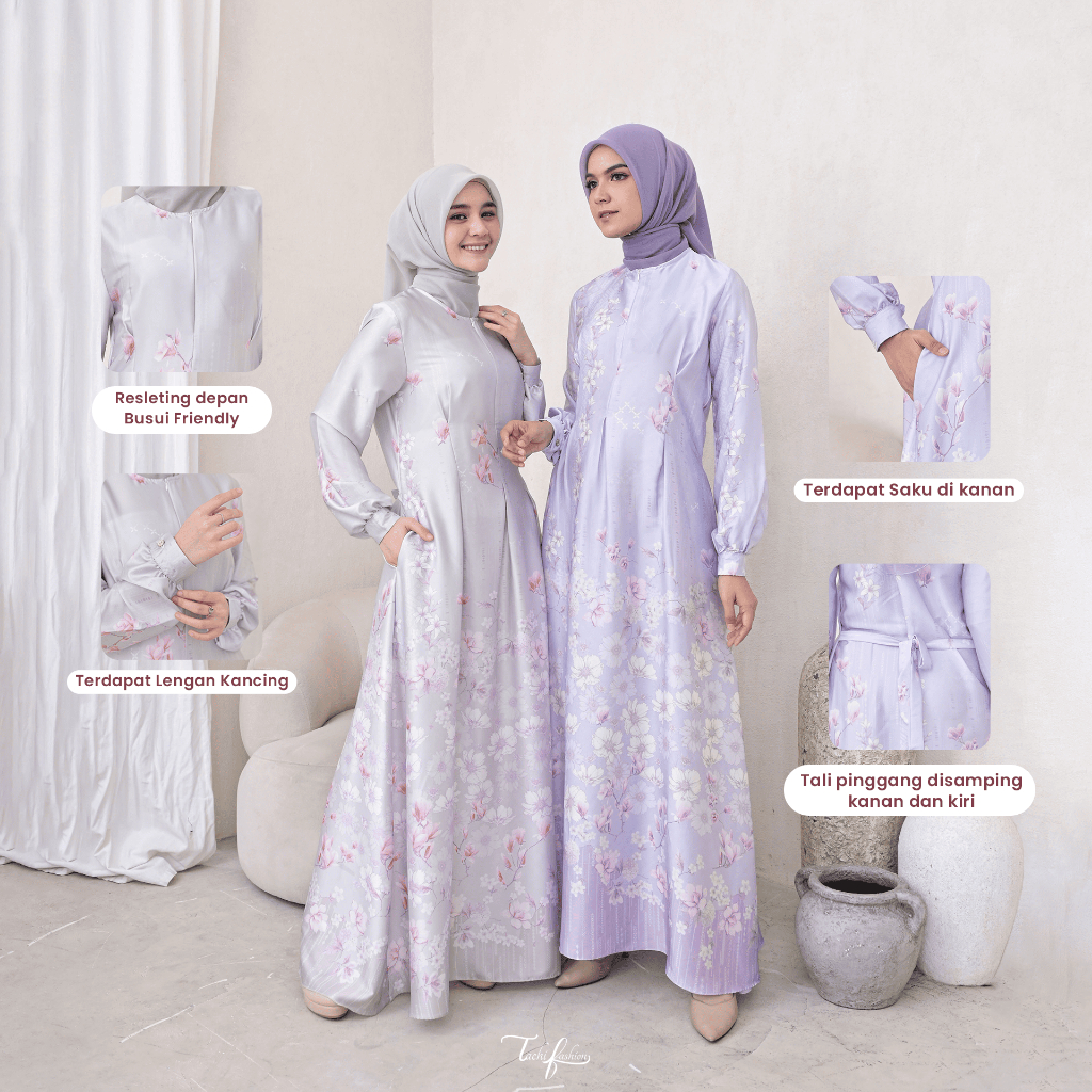Tachi Fashion Aluna Gamis Wanita Motif Bunga Cantik Modis Terbaru