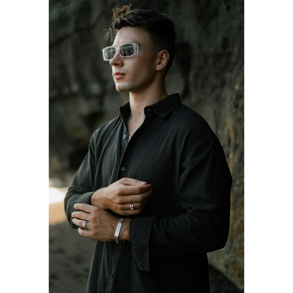 BEACHWELL Kemeja Pria Polos Lengan Panjang Casual Linen Katun Krinkel Premium Putih Hitam Cream Biru Hijau Coklat - Keme
