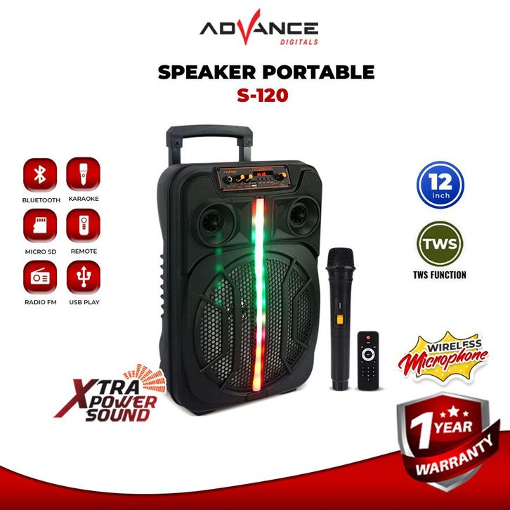 Speaker Advance S-120 Bluetooth Music Karaoke 12inch Free Mic