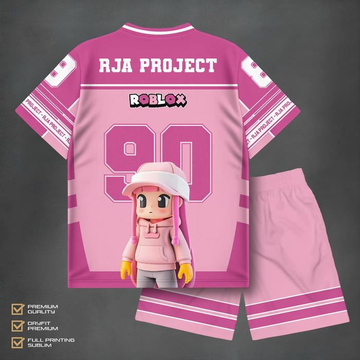 Setelan Kaos Anak Roblox Pink Cewek Lucu Premium Quality | Baju Anak Roblox Pink Premium Quality Dryfit | Jersey Anak Pe