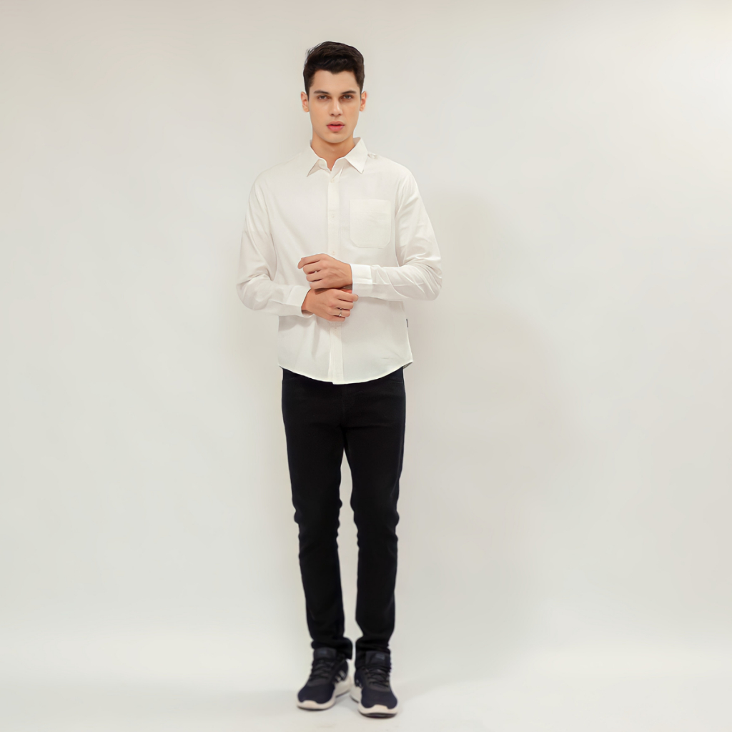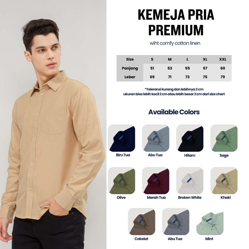 CASUALUXE Kemeja Pria Lengan Panjang Polos Putih Broken White Linen Softy Slimfit