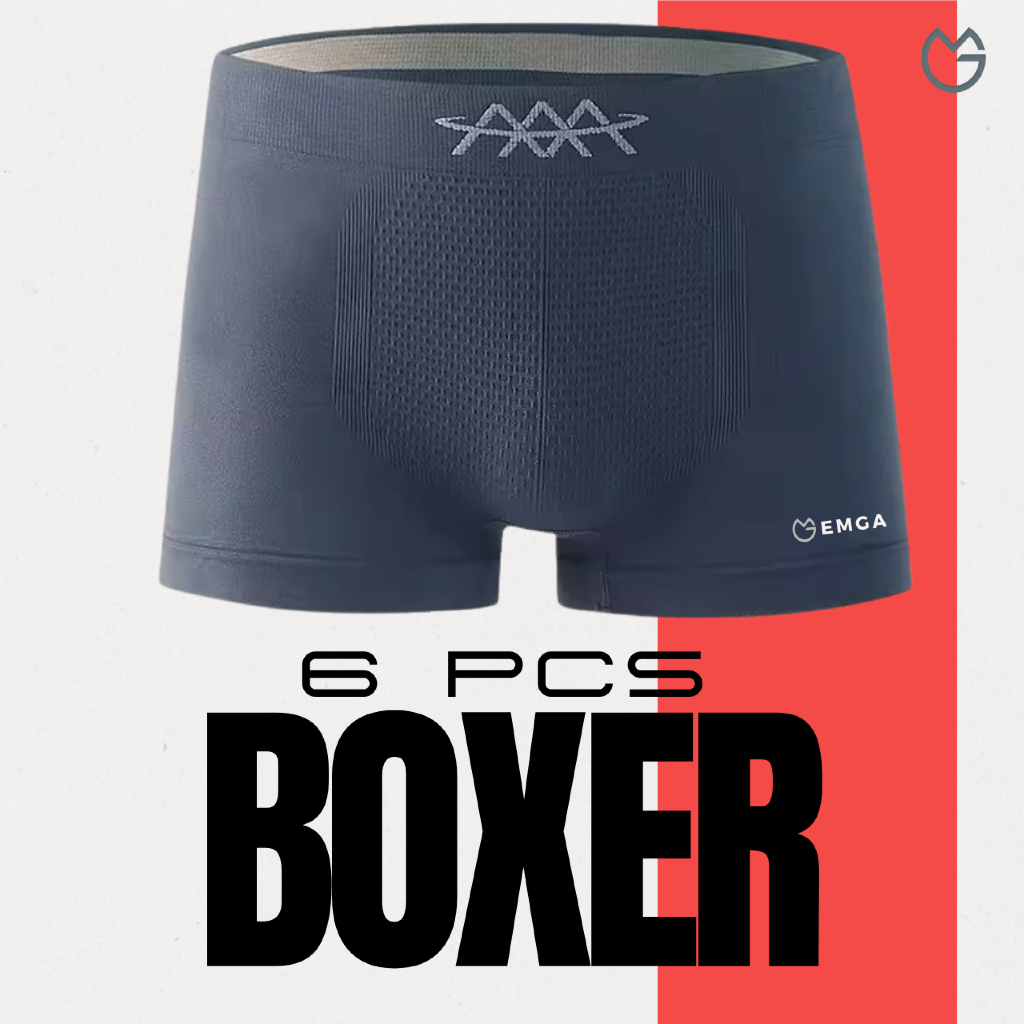 Emga Boxer Isi 6 Celana Dalam BX1E Pria Breathable Comfortable Seamless Kolor Briefs Pendek CD Underwear Dalaman Sempak Men Man Cowok Laki Motif Polos