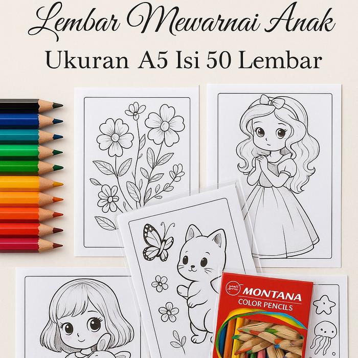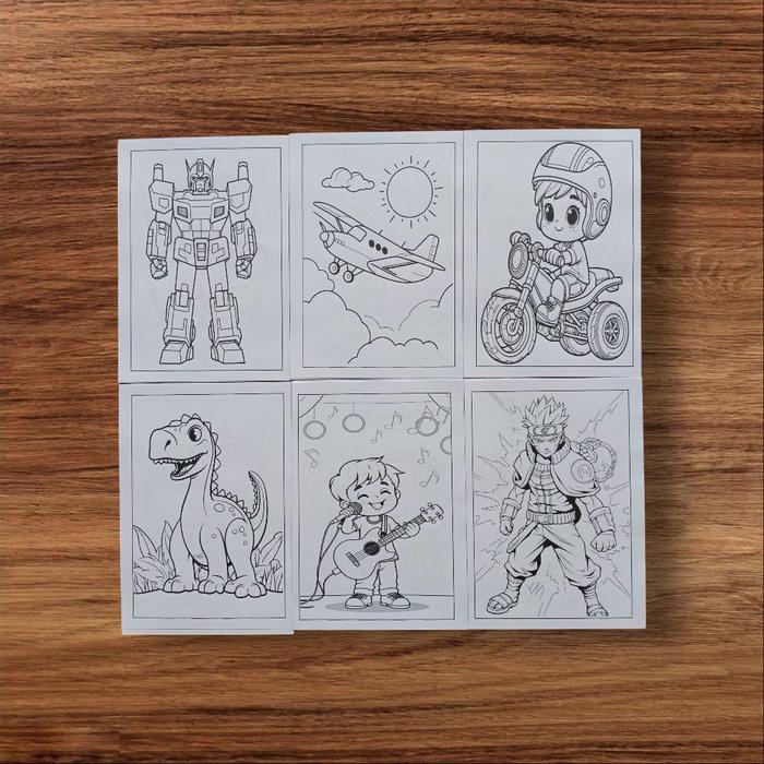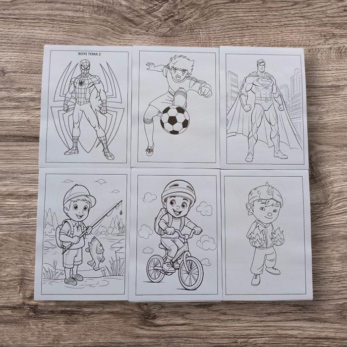 Lembar Kertas Mewarnai Anak Ukuran A5 Beragam Tema - Laki-Laki 50 Lembar, Gambar