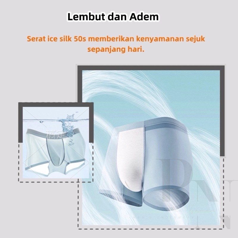 PriaNyaman 3/6PCS Celana Dalam Pria Premium Boxer Ice Silk Antibakteri Elastis Tipis Adem Lembut