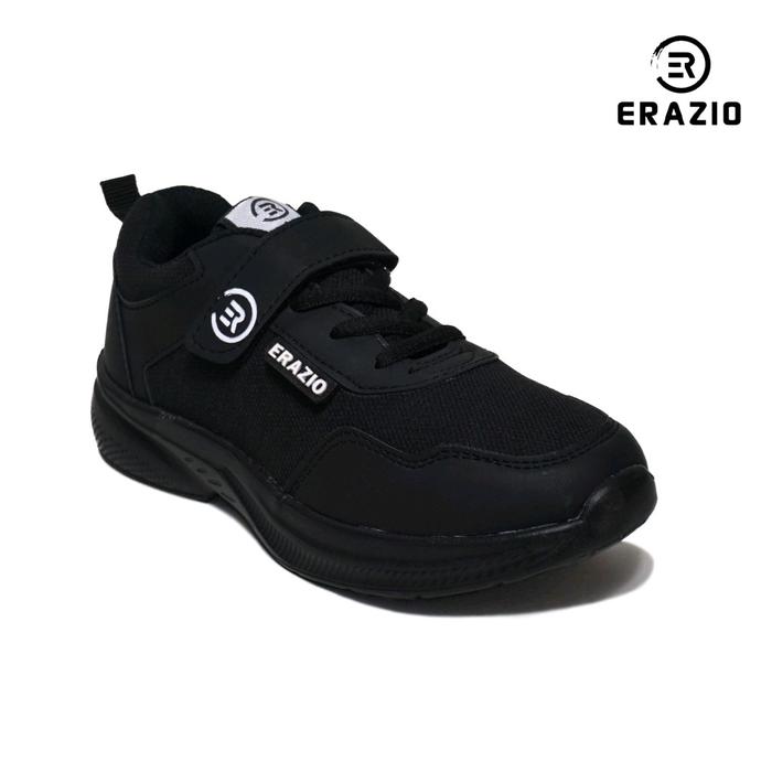 Erazio Sepatu Sekolah Anak Model Pylon Velcro Dan Tali All Black Sepatu Anak Laki Laki Dan Perempuan Full Hitam Original