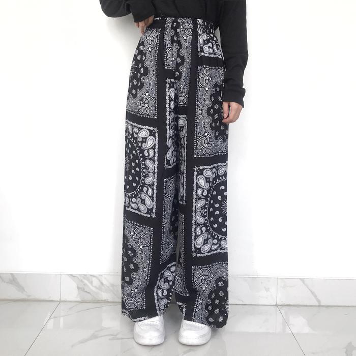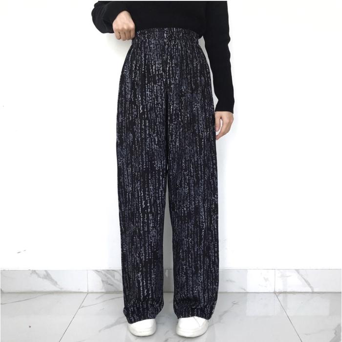 Celana Motif Wanita Kallyoutfit Rayon Kulot Panjang Part 2 Katun Linen Garis Kain - Shafa Black