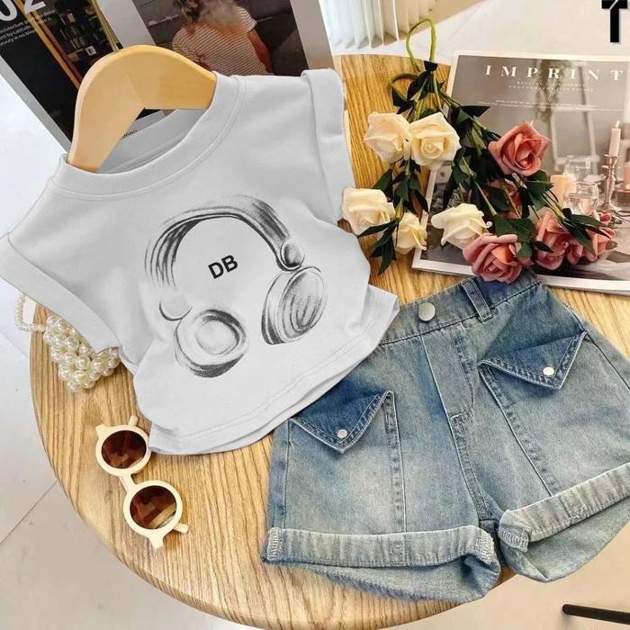 Setelan Jeans Anak 1-5 Tahun Model Crop Top Trendy Baju Perempuan Korean Style - Putih, 6-12 Bulan