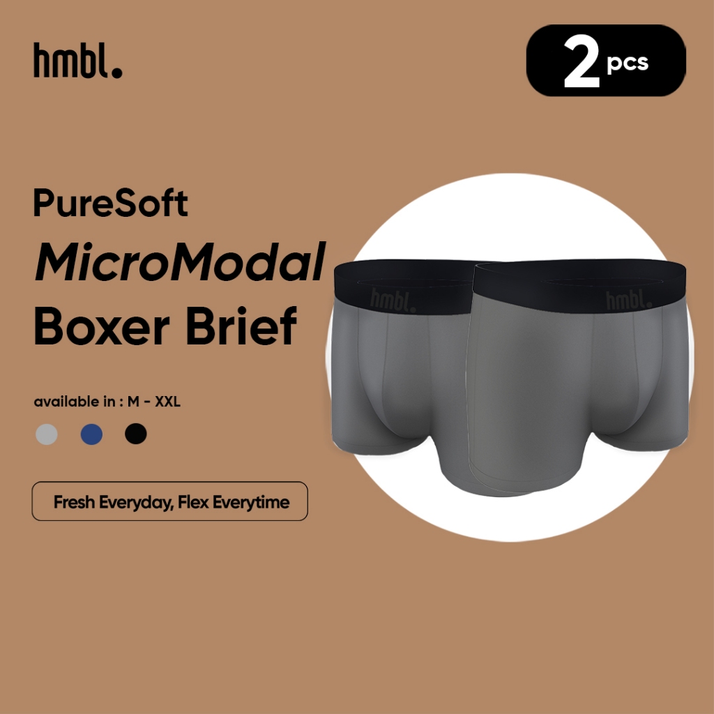 hmbl MicroModal Boxer Brief Men 2 PCS, Celana Dalam Pria Underwear CD Cowok (M-XXL)