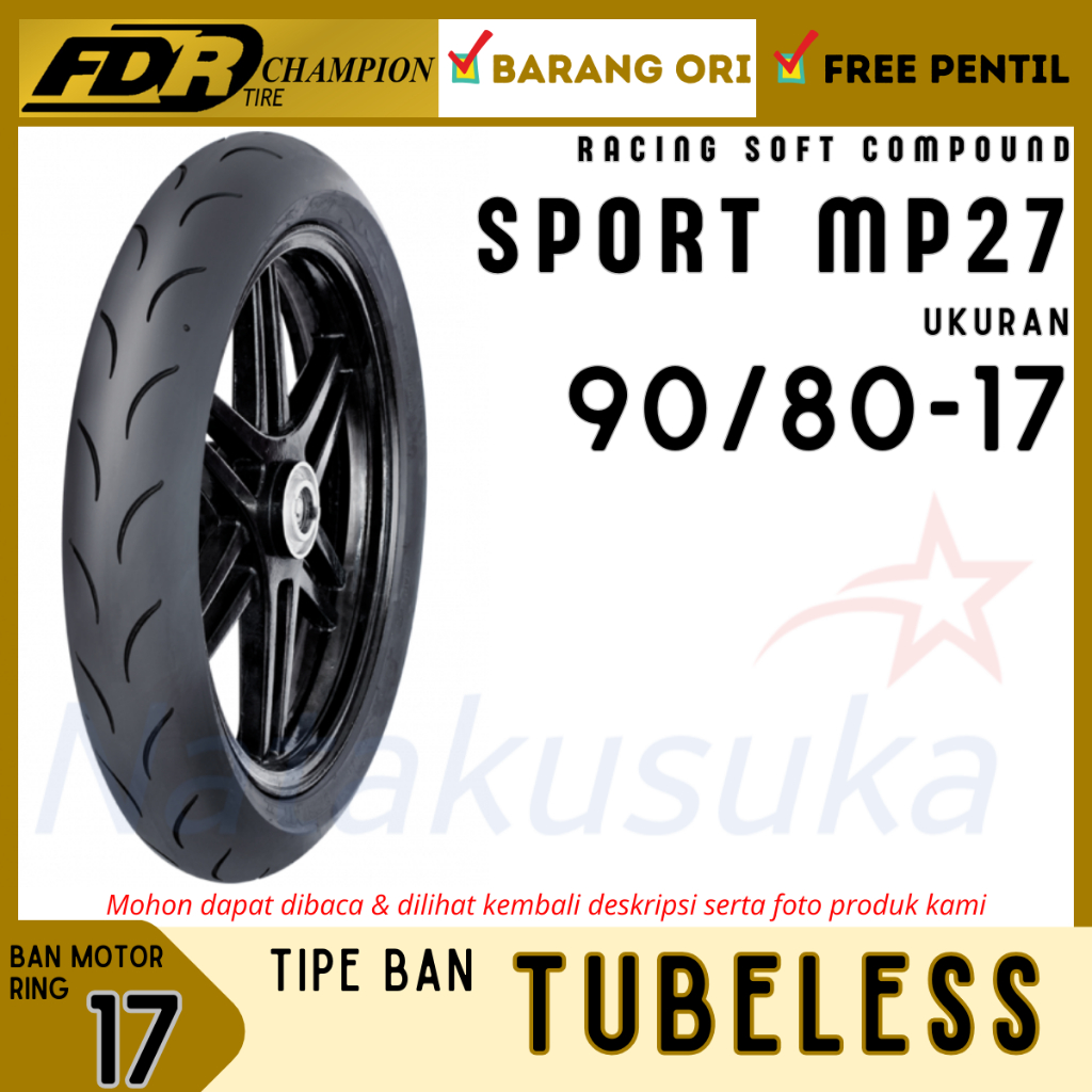 FDR Ban Motor SoftCompound Sport MP27 90/80-17 Tubeless (TL) Motor Bebek
