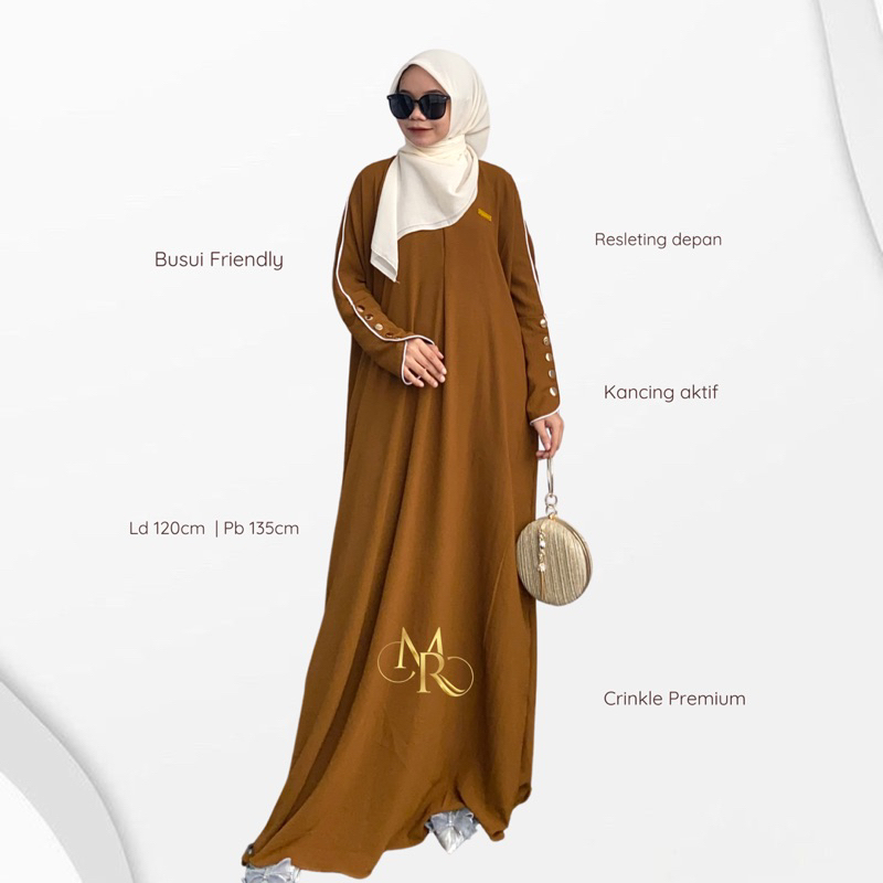 Abaya Basic Habibah Premium Gamis Plain Umroh Daily Abaya Kancing Dress Gamis Batwing Oversize Crinkle Inara Button - EMRACOLLECT.ID