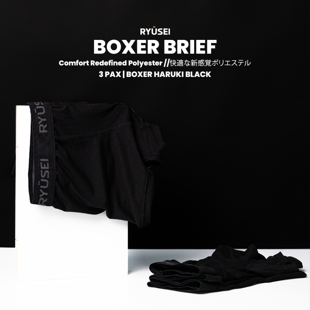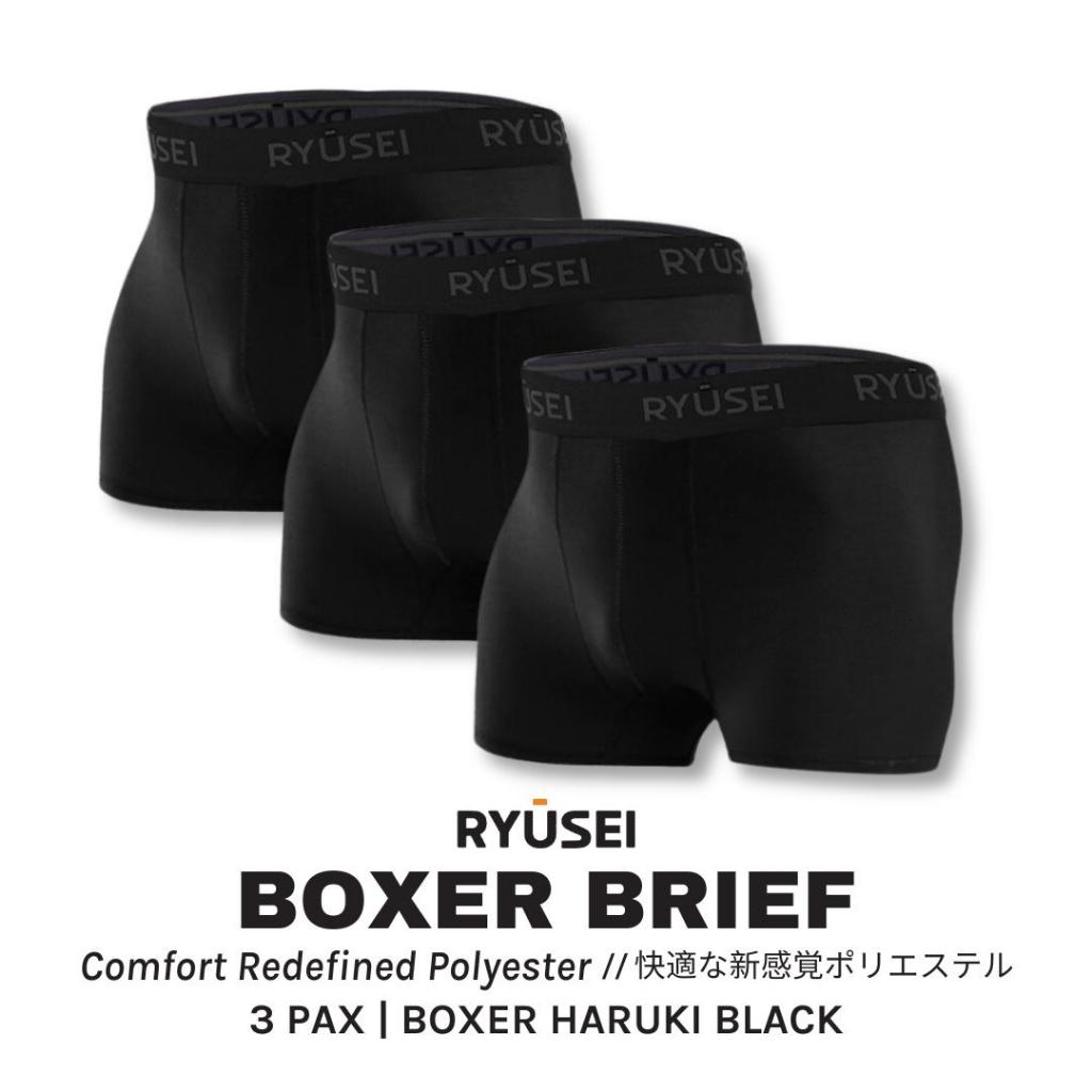 Ryusei Boxer Haruki Polyester Spandex 3 Pcs - Black | Nyaman & Elastis