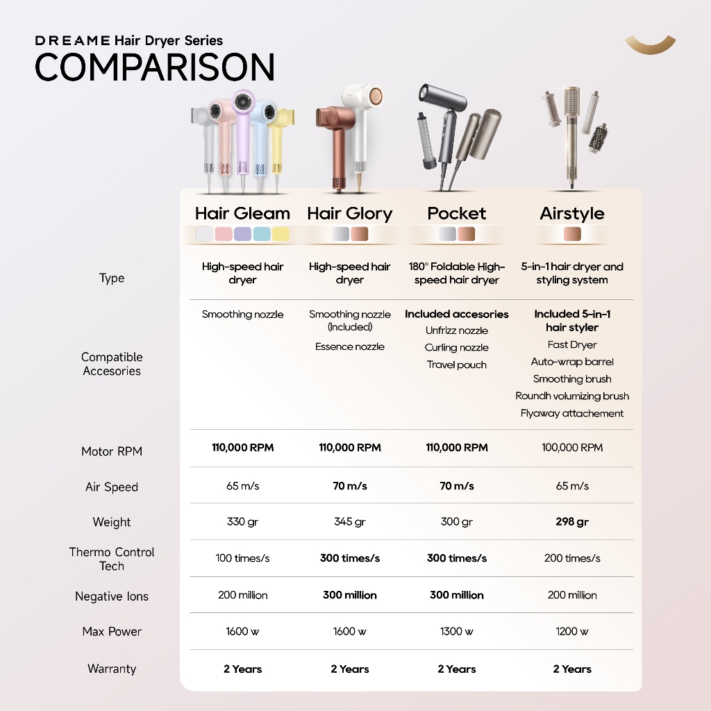 Dreame Pocket Travel Hair Dryer 3 in 1 Stylus Curly