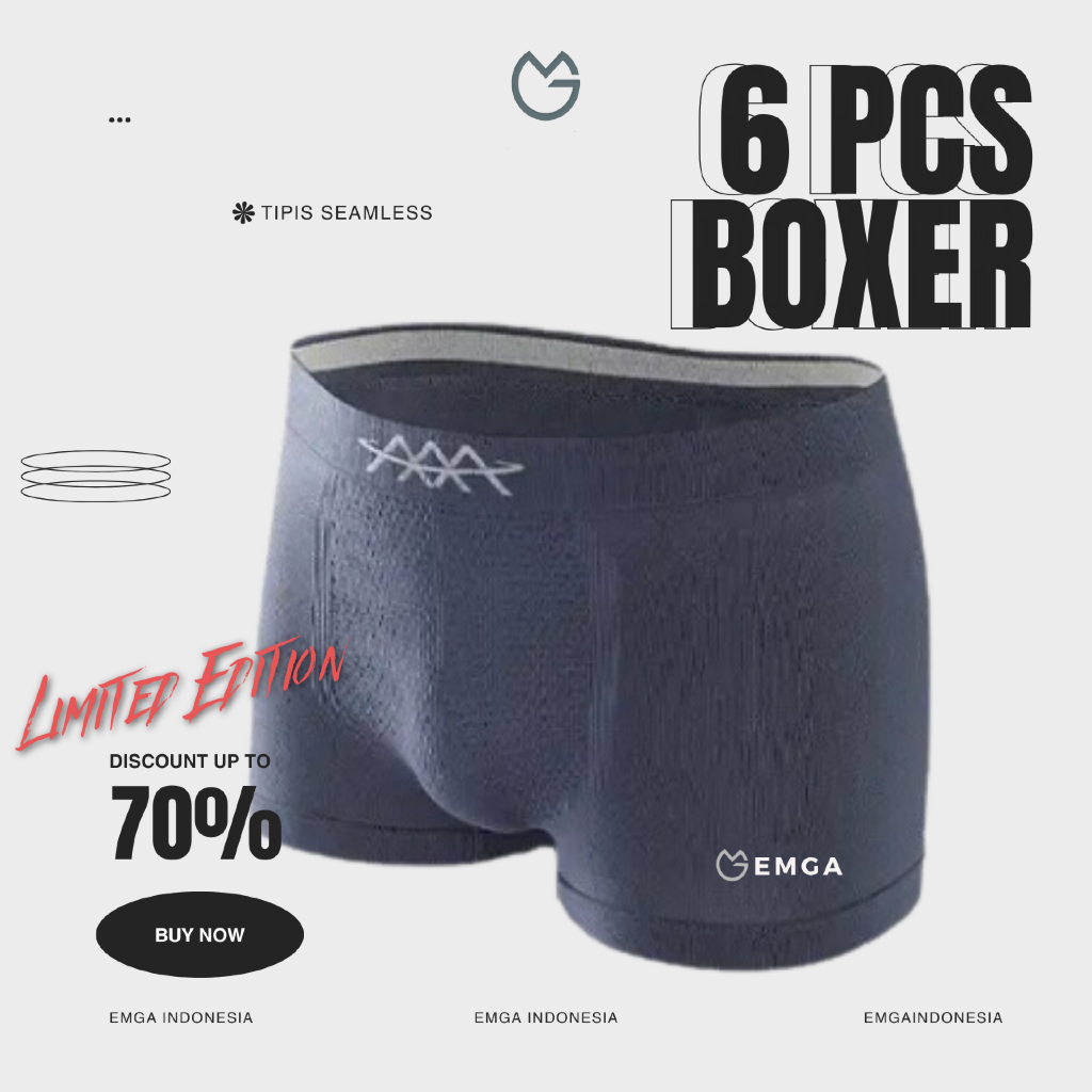 Emga Boxer Isi 6 Celana Dalam BX1E Pria Breathable Comfortable Seamless Kolor Briefs Pendek CD Underwear Dalaman Sempak Men Man Cowok Laki Motif Polos