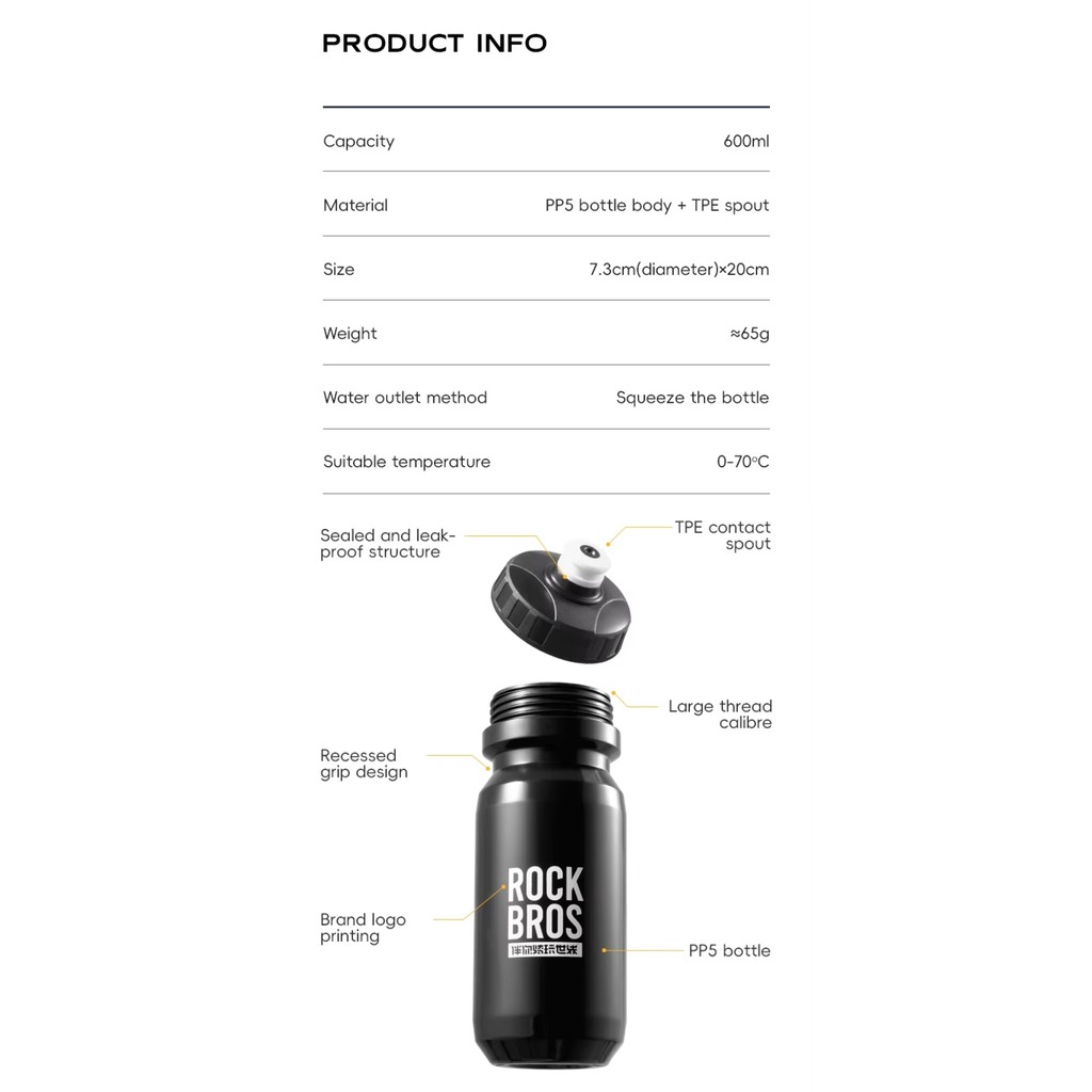 Rci Rockbros 35210066 Botol Minum Sepeda Olahraga Bicycle Sports Water Drink Bottle 600ml Dust Cover