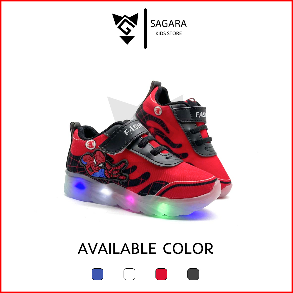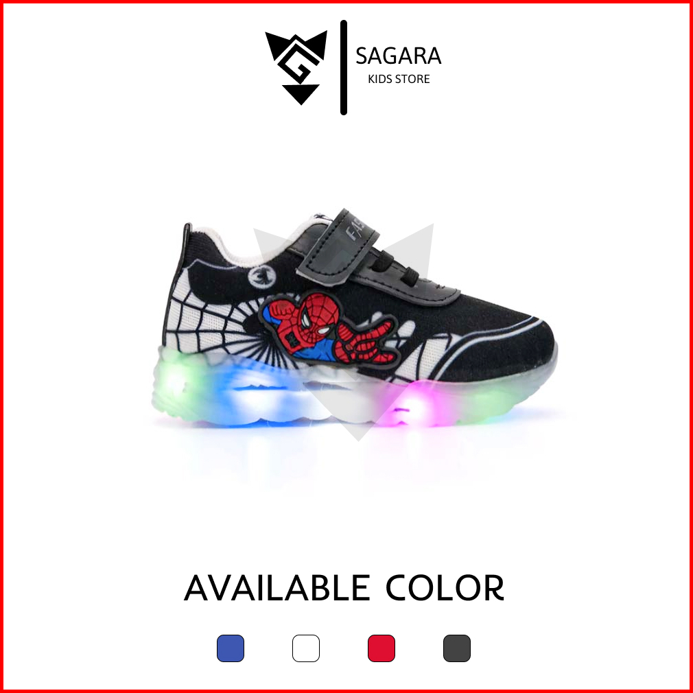 Sepatu Anak Laki-laki Sneakers Ultimate Spiderman Sepatu Led Menyala Anak Terbaru