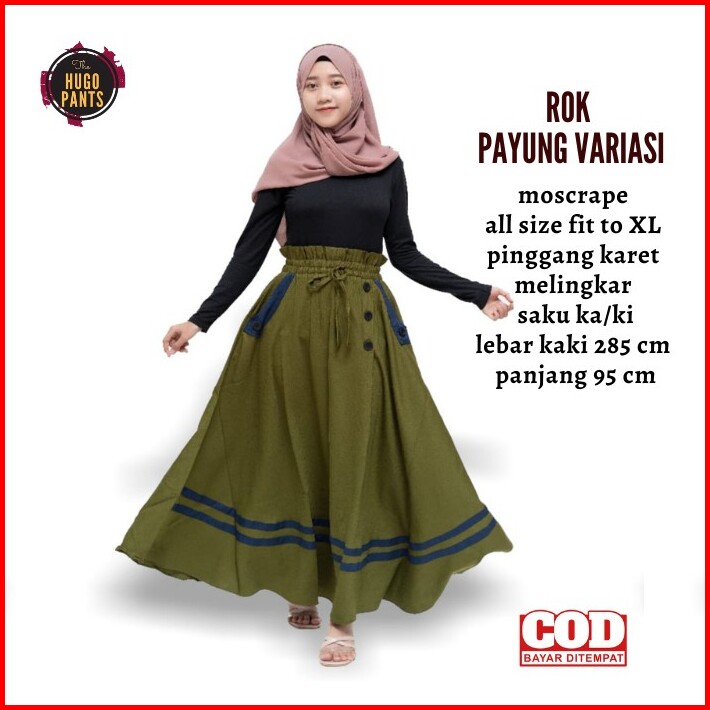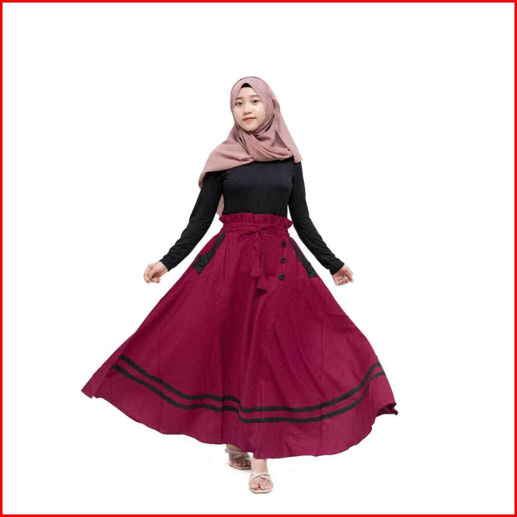 Rok Payung Panjang Jumbo Bawahan Wanita Muslim Bahan Moscrape Variasi Kancing Kombinasi