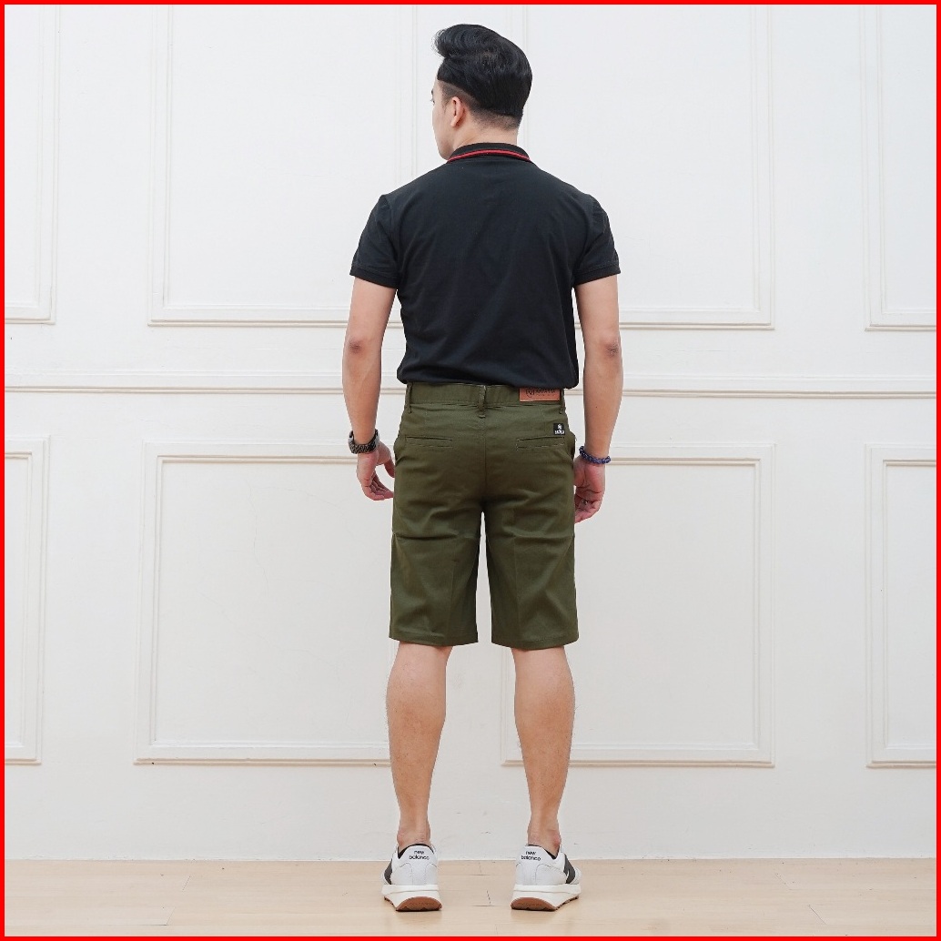 Arzanka - Celana Chino Pendek Hijau Army Pria Distro Bahan Katun Stretch
