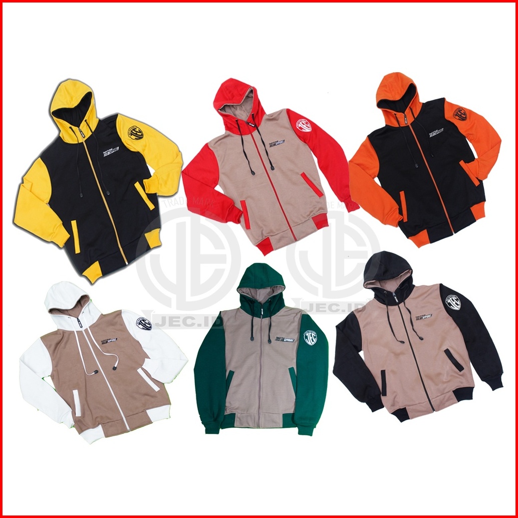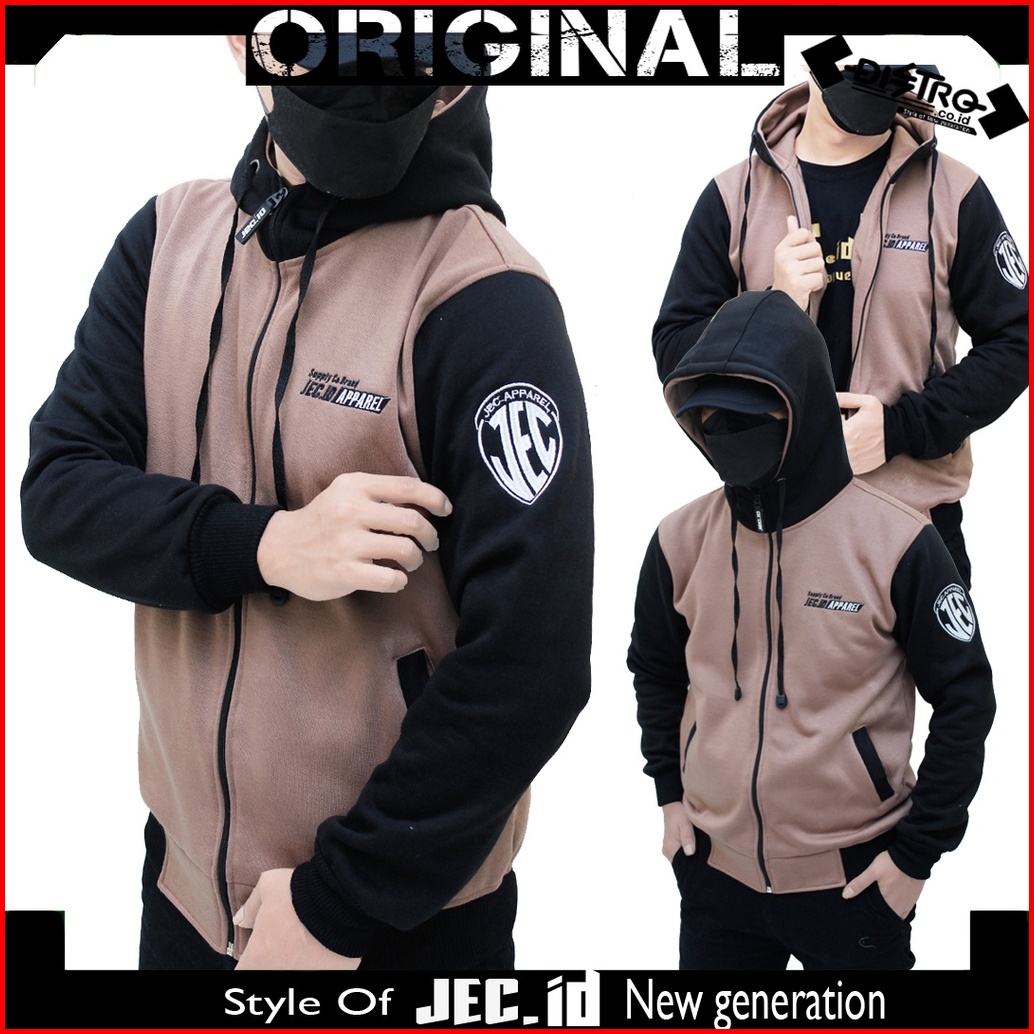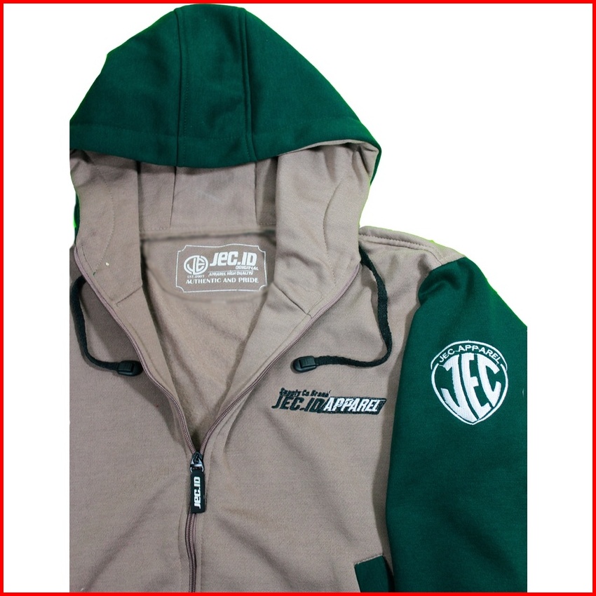 Jecid Jaket Sweater Hoodie Mocca Combi Hijau Botol Zipper Jec Apparel Premium Basic High Neck