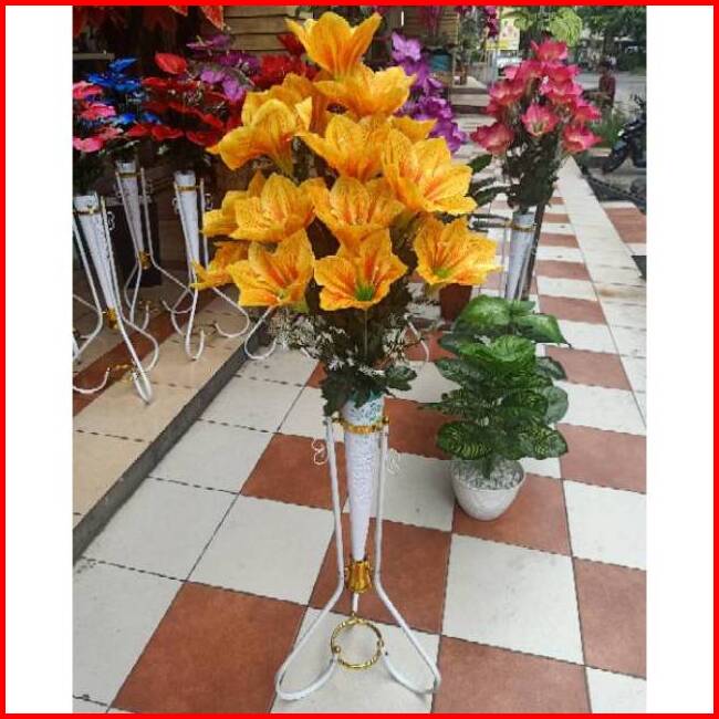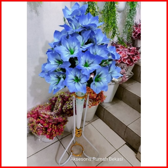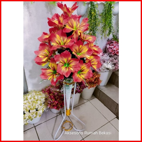 Rangkain Bunga Amarilis Bunga Lilly Dengan Pot Standing Besi Bunga Sudut Ruangan