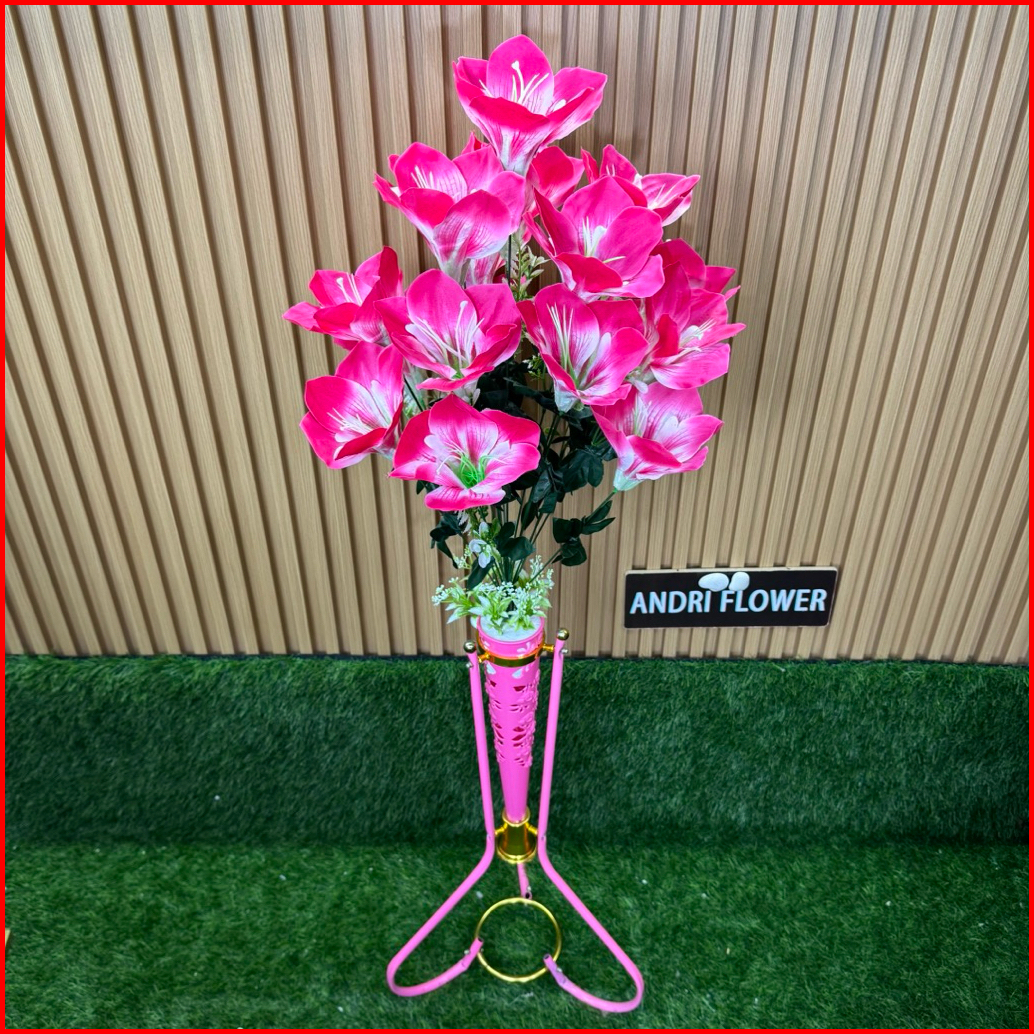 Bunga Hias Amarilis 18 Kuntum Satu Set Dengan Pot Besi