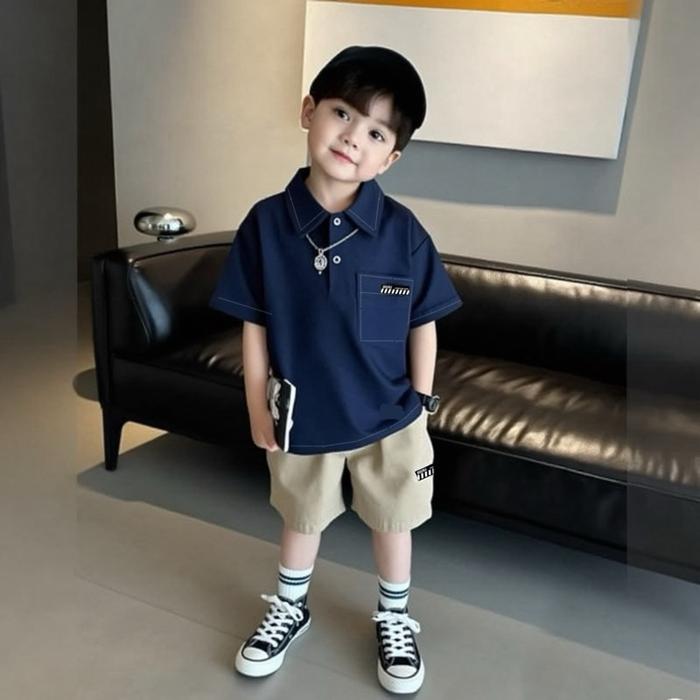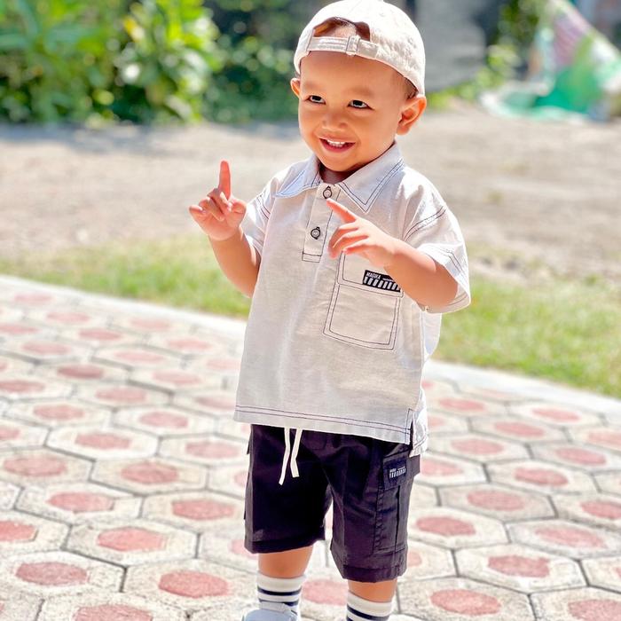 Magika Shop - Setelan Kemeja Anak Laki Laki Over Size Celana Cargo Drill Warna Hitam Dan Putih Ukuran 6Bulan - 1-6Tahun