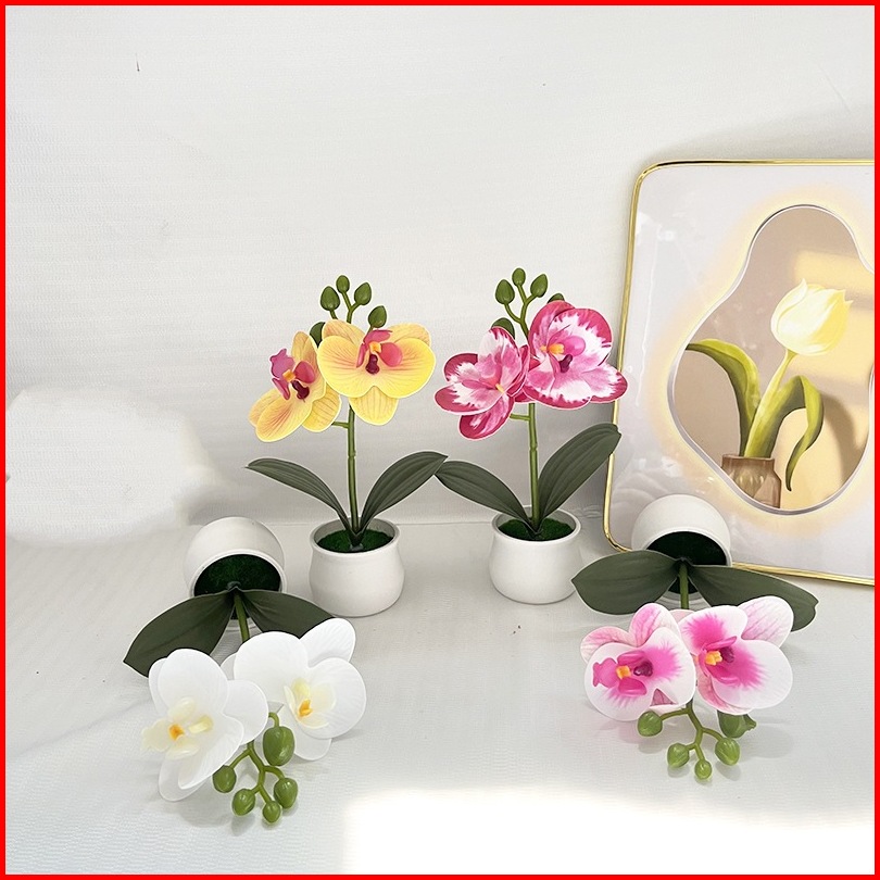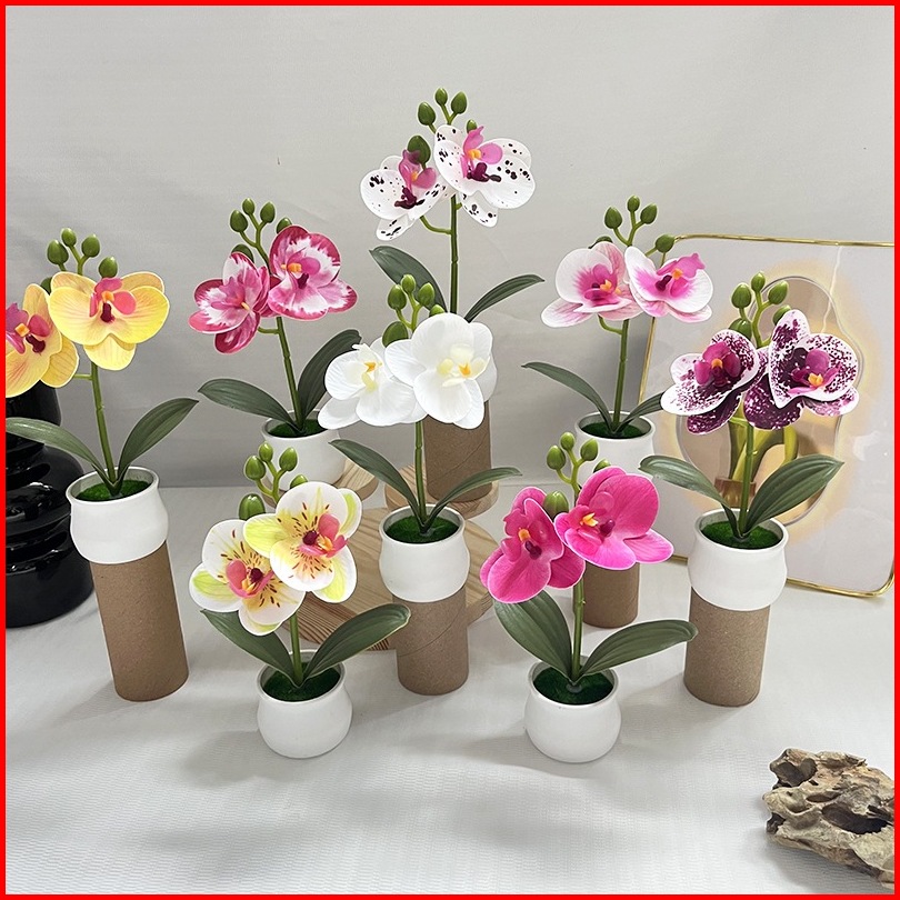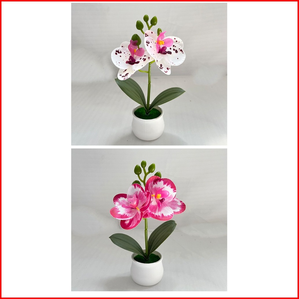 Pohon Anggrek Tiruan 2 Bungaan - Hiasan Luar Ruangan Bunga Tiruan Hiasan Pernikahan Bonsai