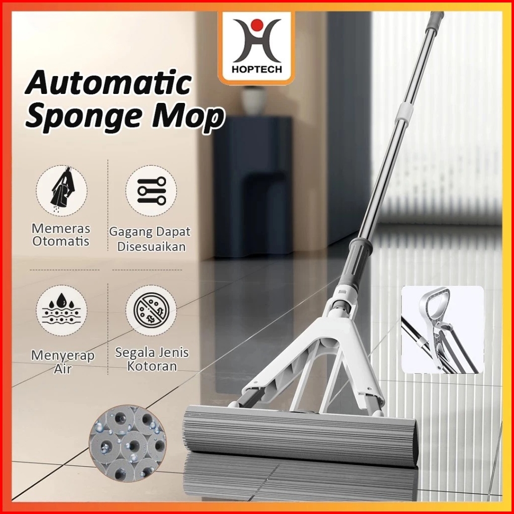 Hoptech Luxury Sponge Mop Pel Busa Collodion Otomatis Alat Pel Spons Lipat Peras Otomatis
