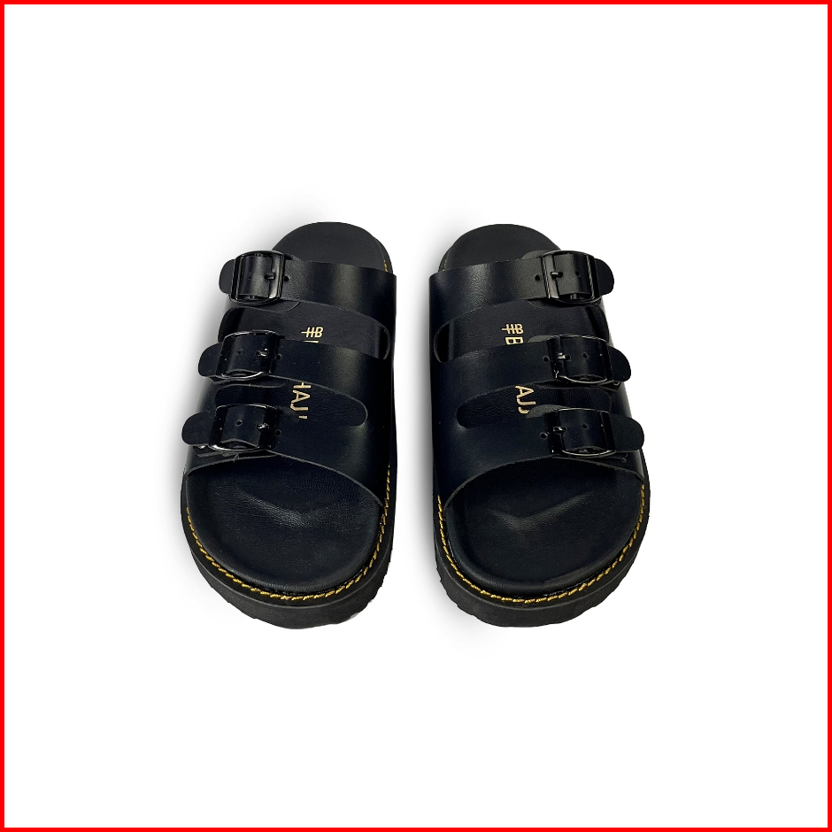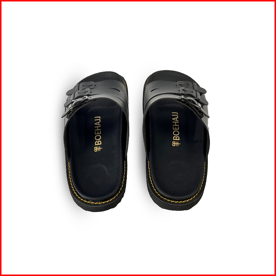 Boehajj Leon Black - Sandal Slide Kulit Pria Wanita