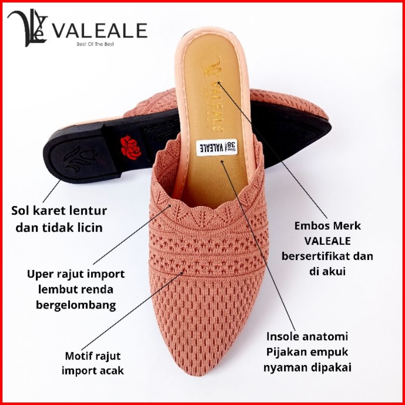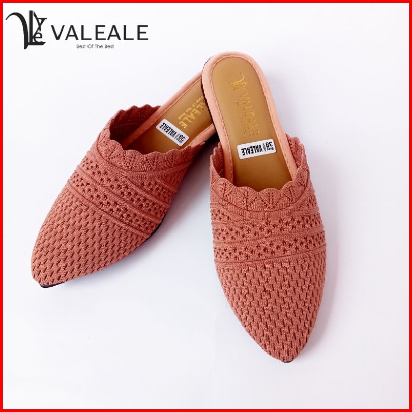 Valeale Sandal Mules Leonita Sendal Slop Rajut Import Renda Bergelombang Flatshoes Slip On Pijakan Empuk Sol Karet