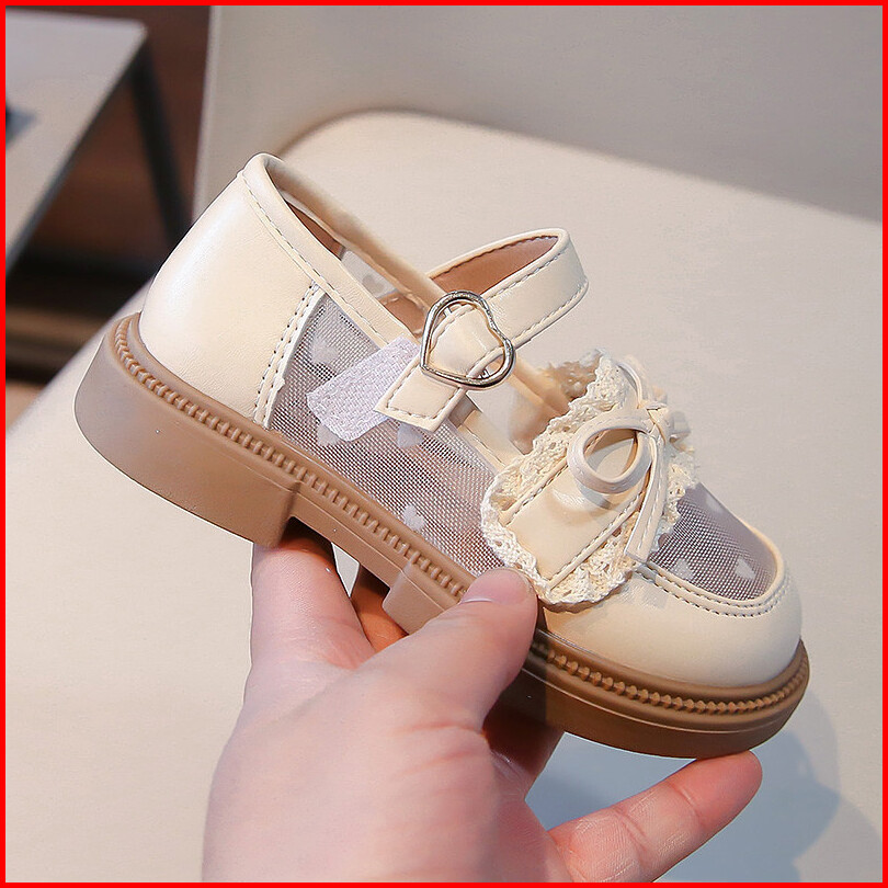 Sepatu Datar Kulit Bayi Perempuan Ikatan Simpul Gaya Korea Sepatu Anak Sol Lembut Nyaman Renda Bordir Hati Penuh Kasih 2
