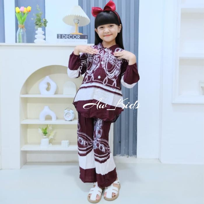 Stelan Baju Dan Celana Rayon Anak Perempuan Terbaru Usia 3 Sampai 9 Tahun - Rayon Motif Random, 3-4 Tahun