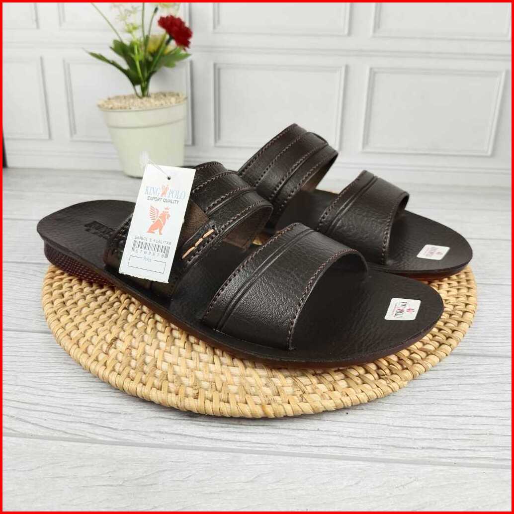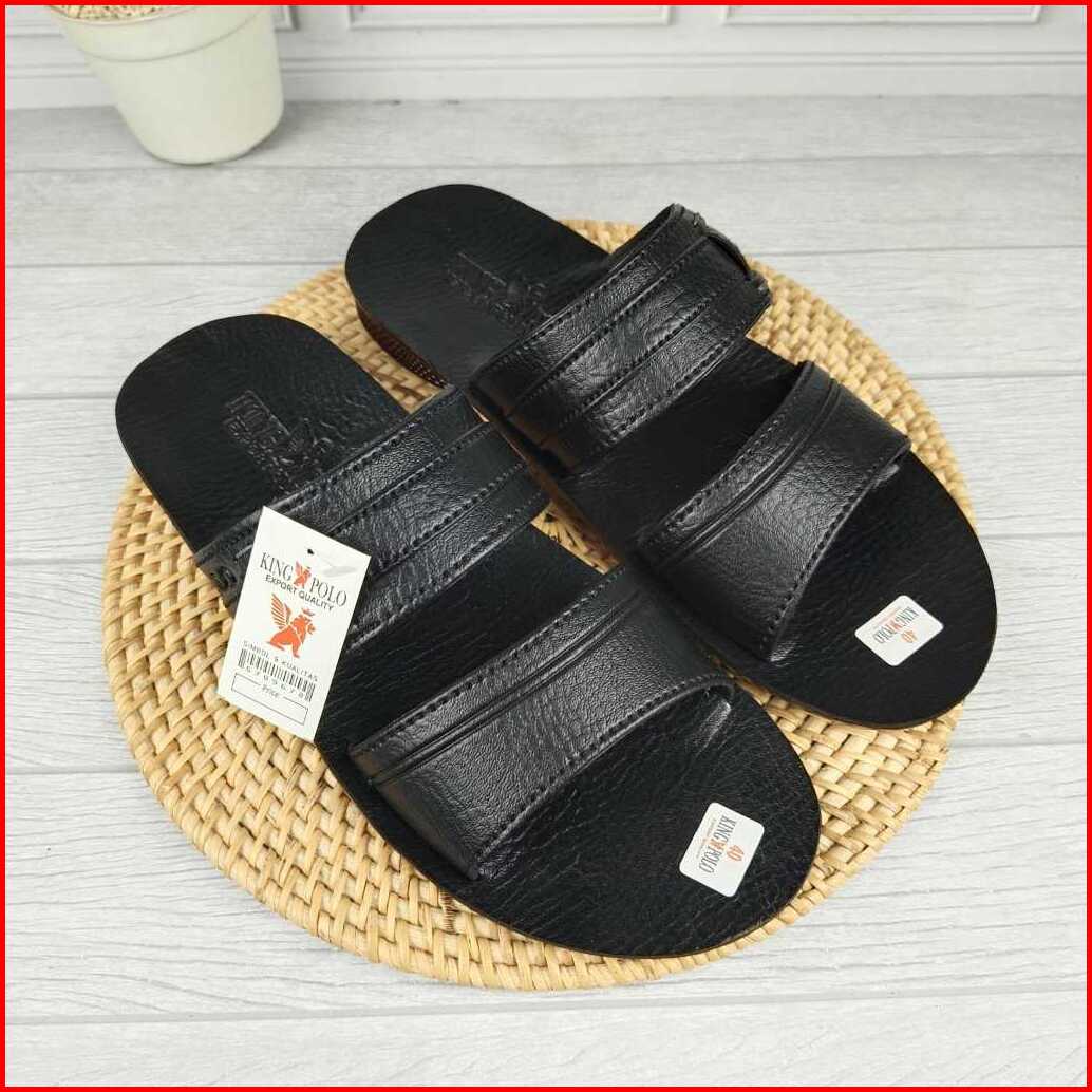 King Polo Sandal Pria Kulit Sapi Slop Sandal Jepit Pria Dewasa Casual Hitam Kk.23 Sendal Bapak-bapak