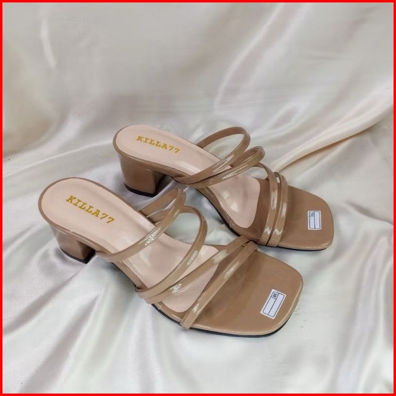 Realpict Bahan Kulit Sintetis 3cm Dan 5 Cm Byk Warna Highheels Sandal Tinggi Heels Ready Size 37-40 Banyak Warna Realpic