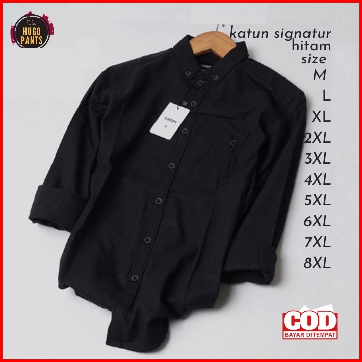 Kemeja Formal Pria Jumbo Hitam Lengan Panjang Bahan Katun Puplin Cowok Dewasa