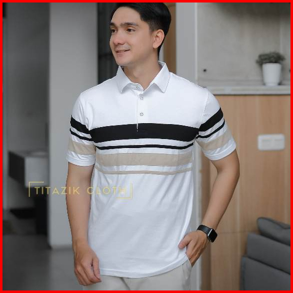 Kaos Kerah Polo Pria Lengan Pendek Motif Kombinasi Original Bahan Cotton Combad 24s Premium